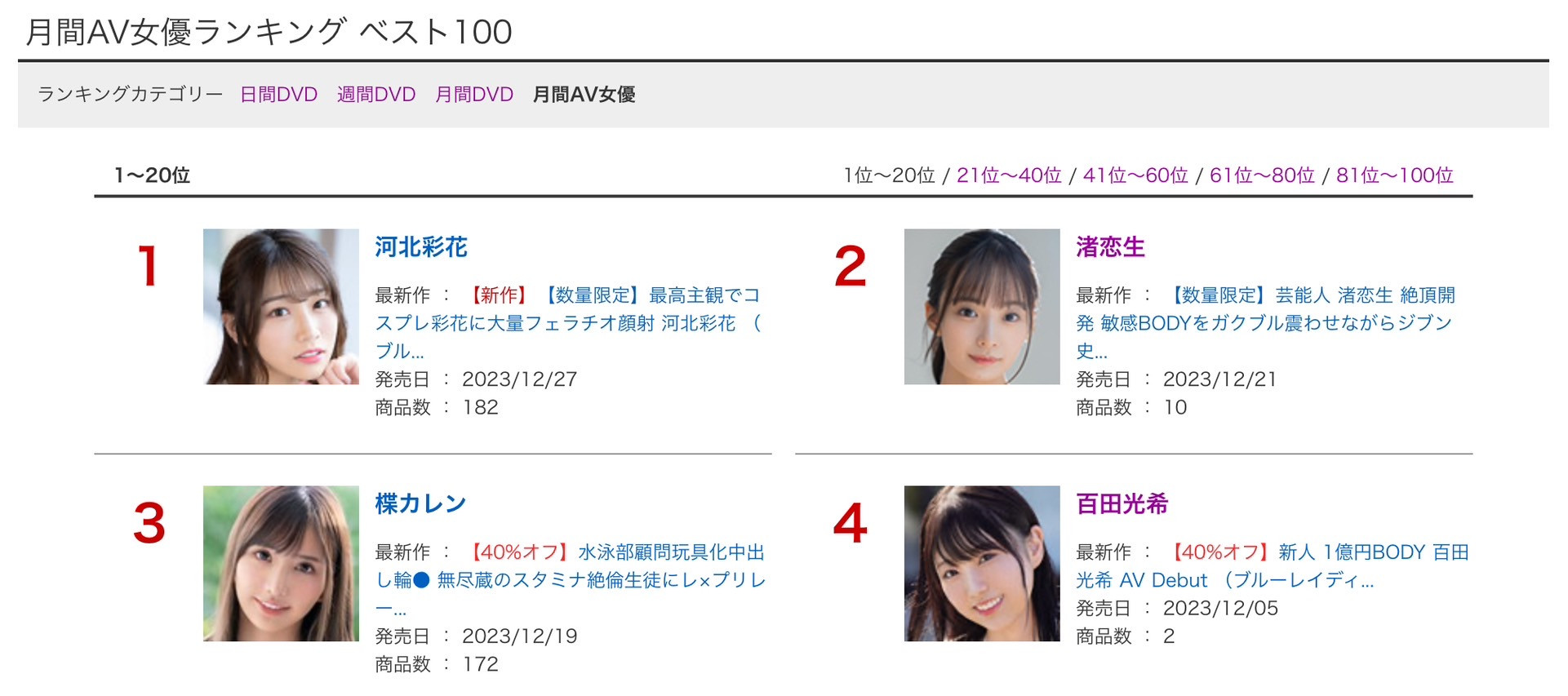 因为单就专属女优的买气来看,楪カレン(楪可怜)就是河北之后最顶尖的高手之一:当然啦,她一个月发两支作品比起其他人是占了些便宜,但回想她刚出道时的状况,在片商OPPAI出道的她个子又小又非常人工,包括事务所在内可能没什么人看好她可以长期担任片商的专属女优吧?但她一出道就很杀,杀到不只OPPAI不肯放她走甚至还多了另一家片商Premium给了专属契约,所以与其说楪カレン(楪可怜)是因为两家片商共同专属所以才这么强不如说是因为她超杀所以才成了两家片商的专属女优,意义完全不同〜