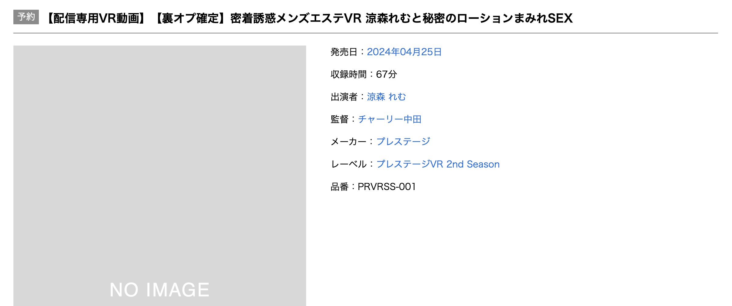 封面还没有出来,不过全新的番号(PRVRSS-001)、由招牌女优「凉森れむ(凉森玲梦)演出都展现了蚊香社重新开始的决心,故事是发生在精油沙龙中,凉森れむ(凉森玲梦)会化身为女技师在你身上倒满油油亮亮的润滑液,然后她手口并用攻击你的性感带,最后骑上来套弄你硬帮帮的小弟,虽然没有办法感受到她的紧度和湿度,但VR的立体效果会让你仿佛身历其境,那绝对不是一般看AV的感觉可比!
