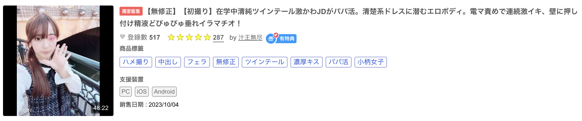 有关这位元恵比寿マスカッツ(原惠比寿麝香葡萄)成员的身分我们就等カリビアンコム(加勒比)公布吧,现在我们来看这一位在FC2平台出鲍的青春肉体:这是番号FC2-PPV -3882898的作品「【无修正】【初撮り】在学中清纯ツインテール激かわJDがパパ活。清楚系ドレスに潜むエロボディ。电マ责めで连続激イキ、壁に押し付け精液どぴゅぴゅ垂れイラマチオ!」,女优长相清秀又绑着双马尾看起来就很好吃的模样,虽然下半身色泽偏深屁股又像长了雀斑一样有着大大小小的斑点,但她那酒窝以及傲娇的表情真的好可爱啊: